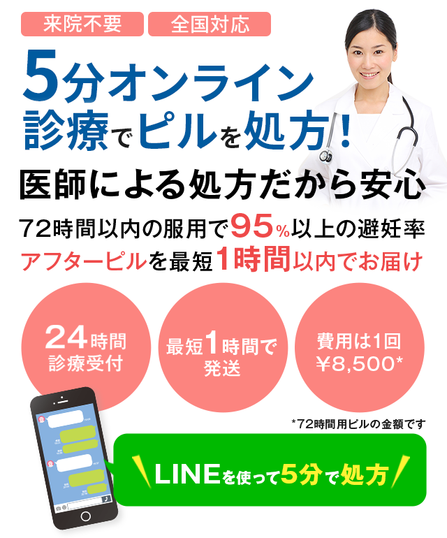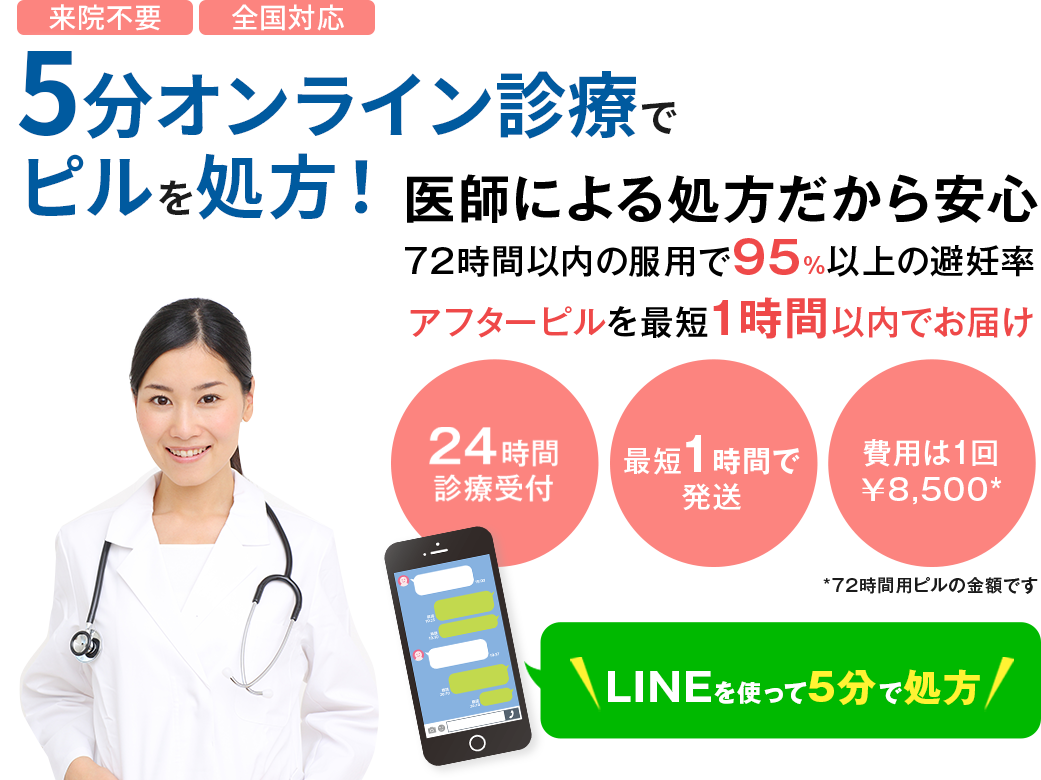 5分程度のオンライン診療を受診後、即日発送いたします。